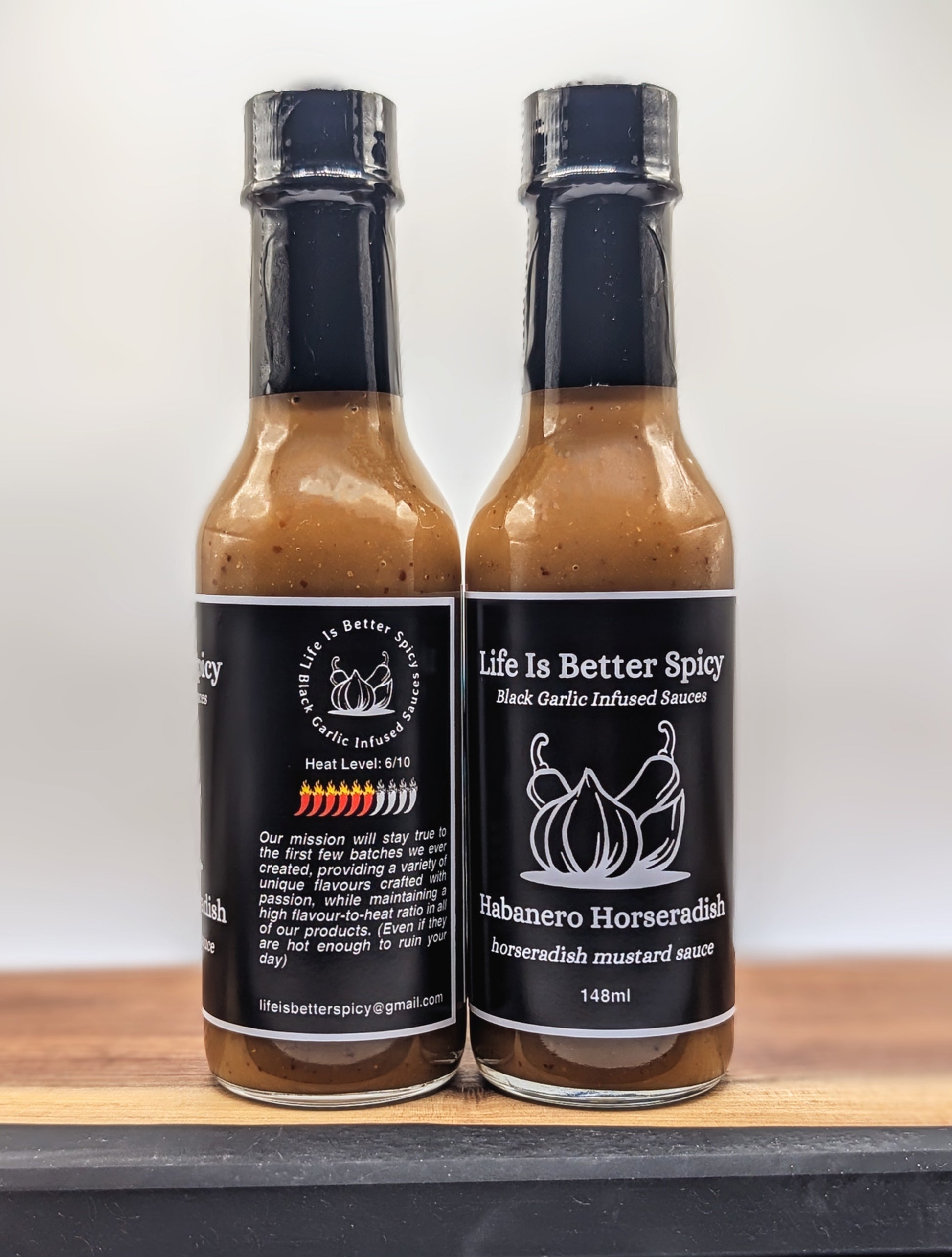 Introducing the unexpected game-changer in spicy condiments. Our Horseradish Masterpiece blends smoky, tangy, spicy, and sour flavours. This bold creation starts with freshly grated horseradish, complemented by hickory-smoked sweet onions and yellow bell peppers, orange habanero, our signature umami kick of black garlic, and a carefully balanced mix of brown and yellow mustard seeds. A squeeze of lemon juice, distilled vinegar, and a hint of maple syrup to balance this complex yet simple flavour profile. This is probably our spiciest "not so hot" recipe coming in at a 6/10